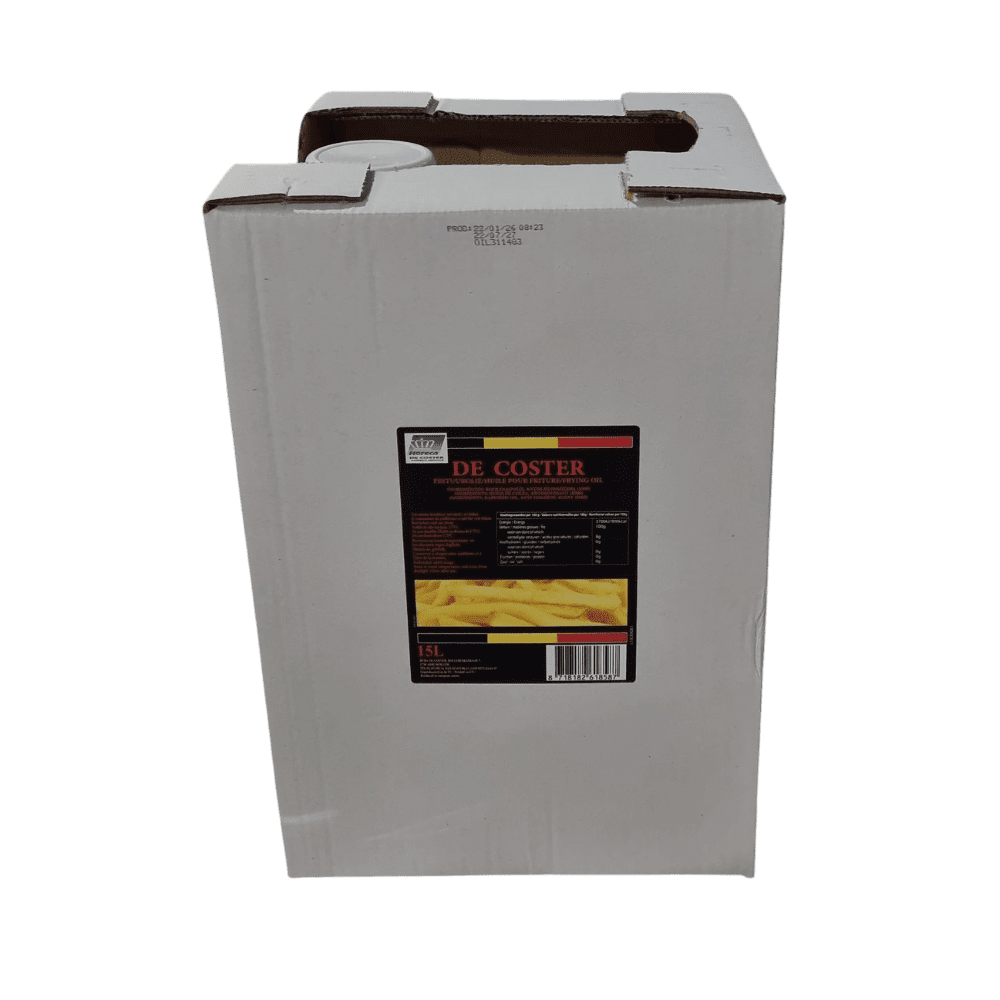 Frituurolie De Coster is een hoogwaardige frituurolie op basis van 100% koolzaadolie, ontwikkeld voor intensief gebruik in de professionele keuken. Koolzaadolie staat bekend om zijn gunstige vetzuursamenstelling, met een hoog gehalte aan enkelvoudig onverzadigde vetzuren en essentiële meervoudig onverzadigde vetzuren zoals Omega 3 en Omega 6. Dankzij de neutrale smaak komen de natuurlijke aroma’s van ingrediënten volledig tot hun recht. Bovendien spettert frituurolie De Coster  niet bij verhitting, wat bijdraagt aan een veilige en schone werkomgeving. Ideaal voor langdurig gebruik in friteuses – van snacks tot groenten en vis. 15 liter verpakking is praktisch in gebruik voor zowel grote keukens als kleine frituren.